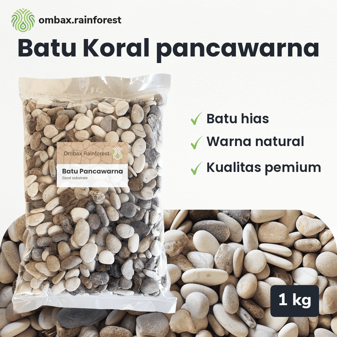 Batu Koral Pancawarna 1KG adalah batu dekoratif dengan warna alami yang bervariasi, memberikan sentuhan estetis pada berbagai kebutuhan dekorasi Anda.