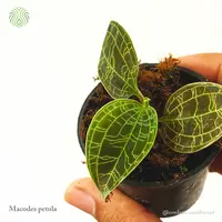 Macodes petola ‘Green’, juga dikenal sebagai “Jewel Orchid”, adalah tanaman hias dengan daun yang mencolok. Daunnya berwarna hijau gelap dengan pola perak yang memikat, memberikan tampilan yang cantik dan eksotis