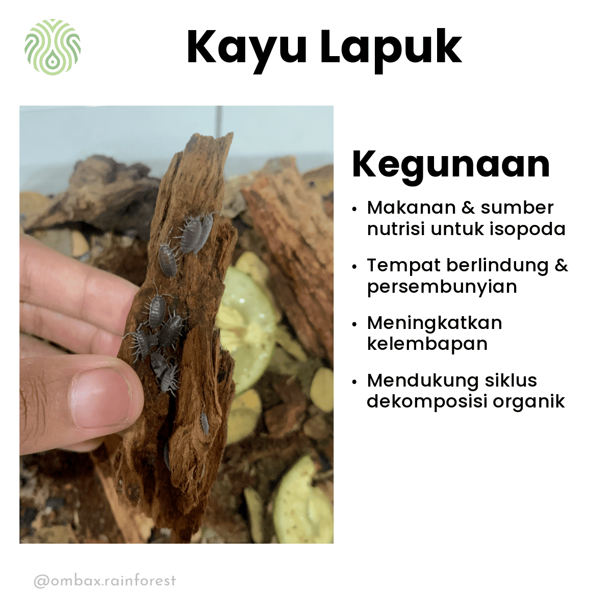 Buat habitat isopoda Anda lebih sehat dan alami dengan Kayu Lapuk ! Produk ini 100% alami dan berkualitas tinggi, dirancang khusus untuk mendukung kebutuhan bioactive terrarium, vivarium, atau ekosistem isopoda Anda.