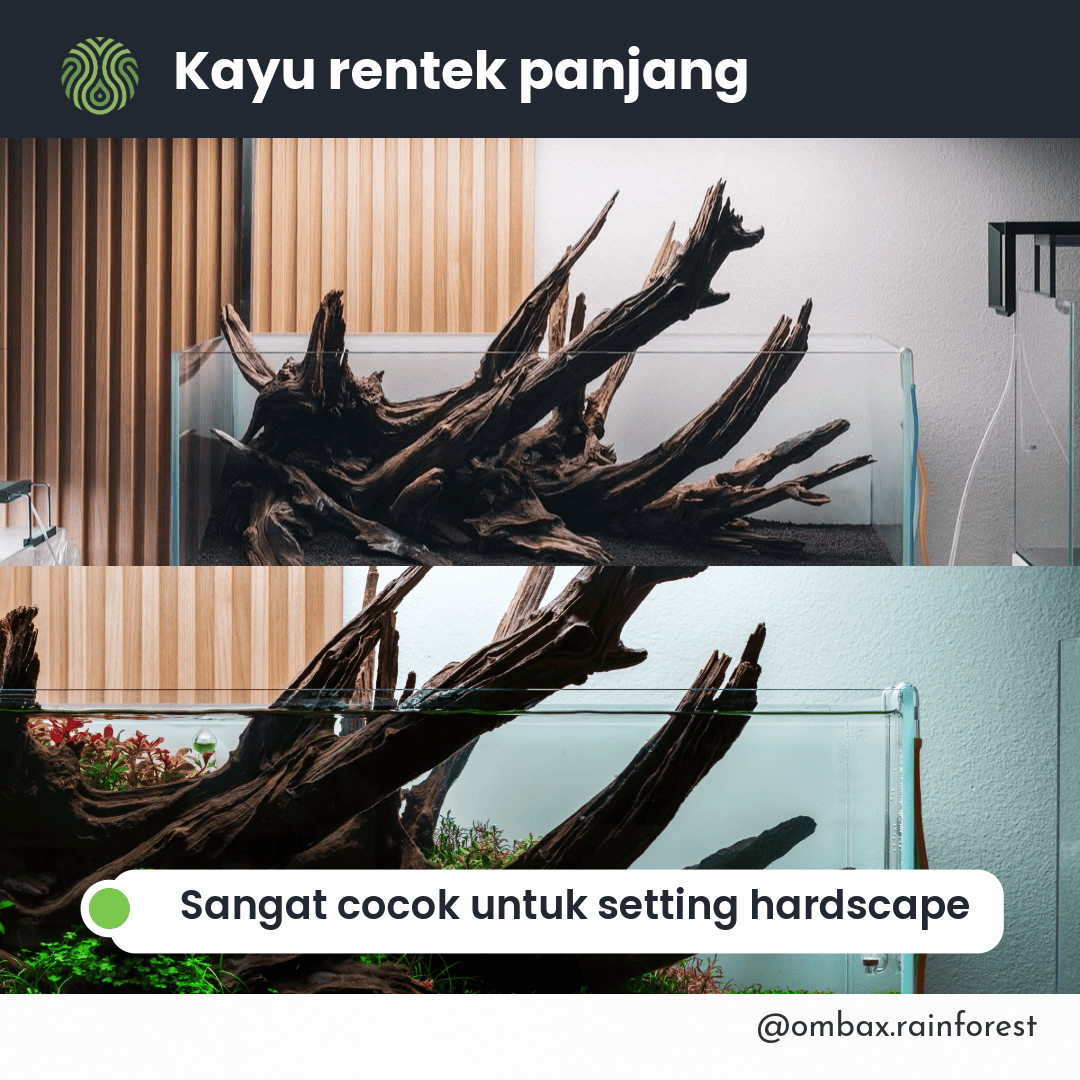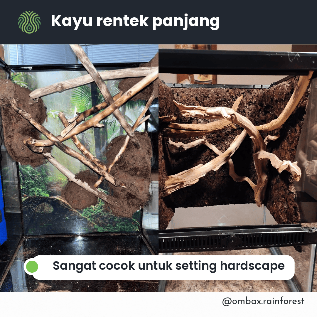 Kayu rentek model panjang dari Ombax Rainforest adalah pilihan ideal untuk hardscape, aquascape, dan vivarium.