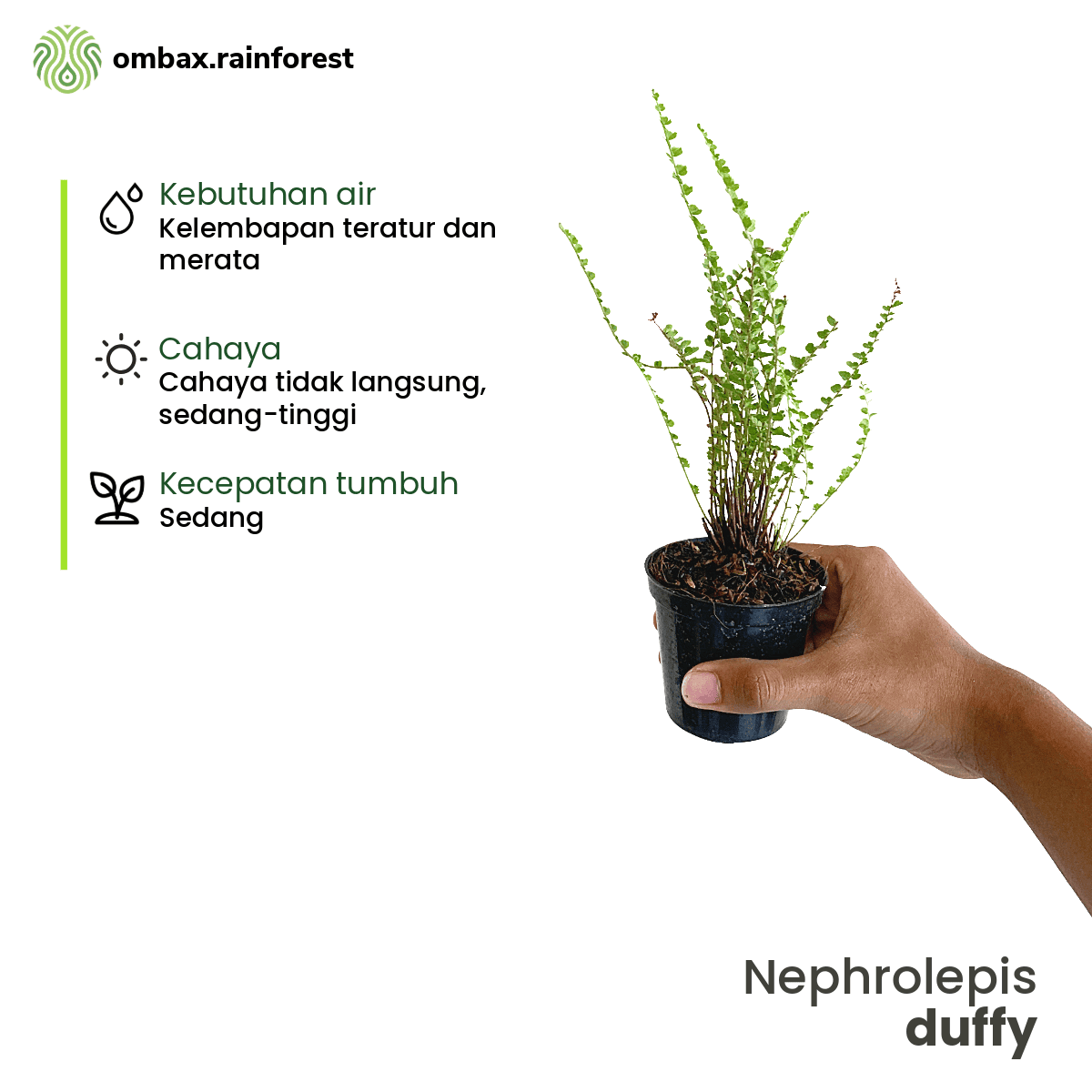 Nephrolepis Duffy adalah jenis pakis mini dengan daun halus bertekstur lembut yang tumbuh rimbun dan elegan. Cocok untuk penghobi terrarium, paludarium, maupun kolektor tanaman hias yang mencari tanaman dengan tampilan tropis dan segar.