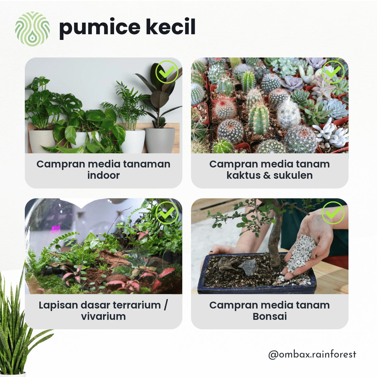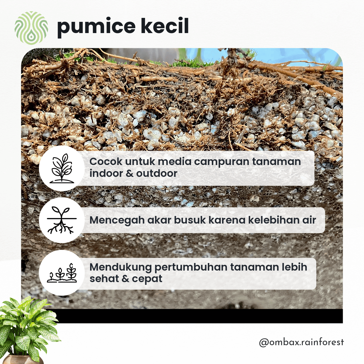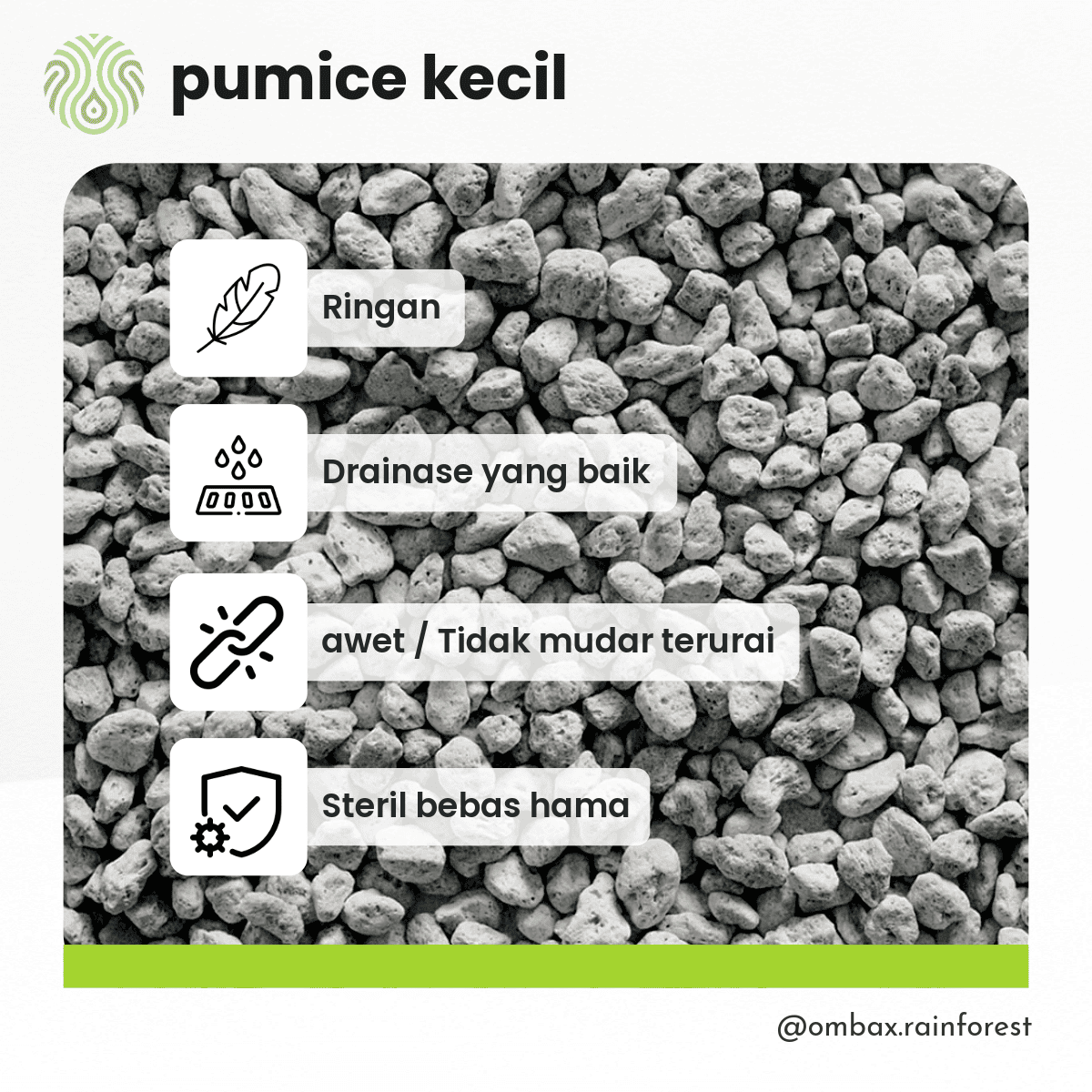 Pumice atau batu apung adalah pilihan terbaik sebagai media tanam karena memiliki porositas yang tinggi dan bobot yang sangat ringan. Terbuat dari material vulkanik alami, batu apung ini mendukung pertumbuhan tanaman dengan cara: